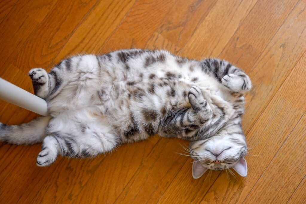 Ugniatanie łapkami (tzw. milk treading) to zachowanie wywodzące się z okresu kocięcego.
